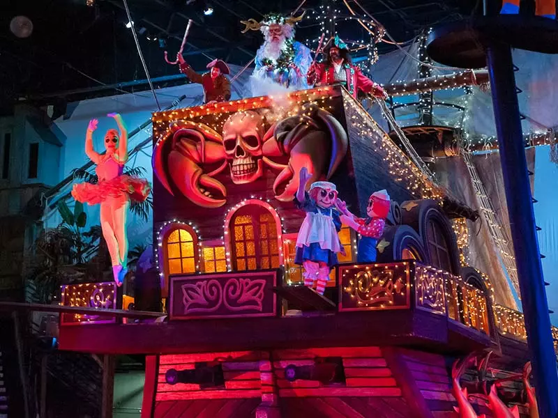 Celebrate all of the good things that make the holidays special as the Mystical Christmas Spirit takes Captain Scrooge on a journey through time and space to find the meaning of Christmas. Cheer along as giant Christmas toys come to life and perform amazing acrobatics high above the lagoon. Laugh at the hijinks of a comical castaway and her sea lion companion. Gaze in wonder at a live Nativity, complete with wise men and an angel with a special message for landlubbers and pirates alike.